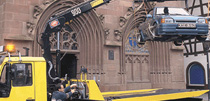 Техника разработана для работы в экстремальных и сложных условиях. Например, краны HMF используются при эвакуации поврежденных спортивных автомобилей с гоночной трассы.